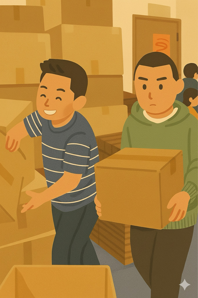 広いフロアに就労継続支援B型と生活介護事業所が区切り無く併設されています。仕事や利用者様同士の交流を通じて社会性を育みます。