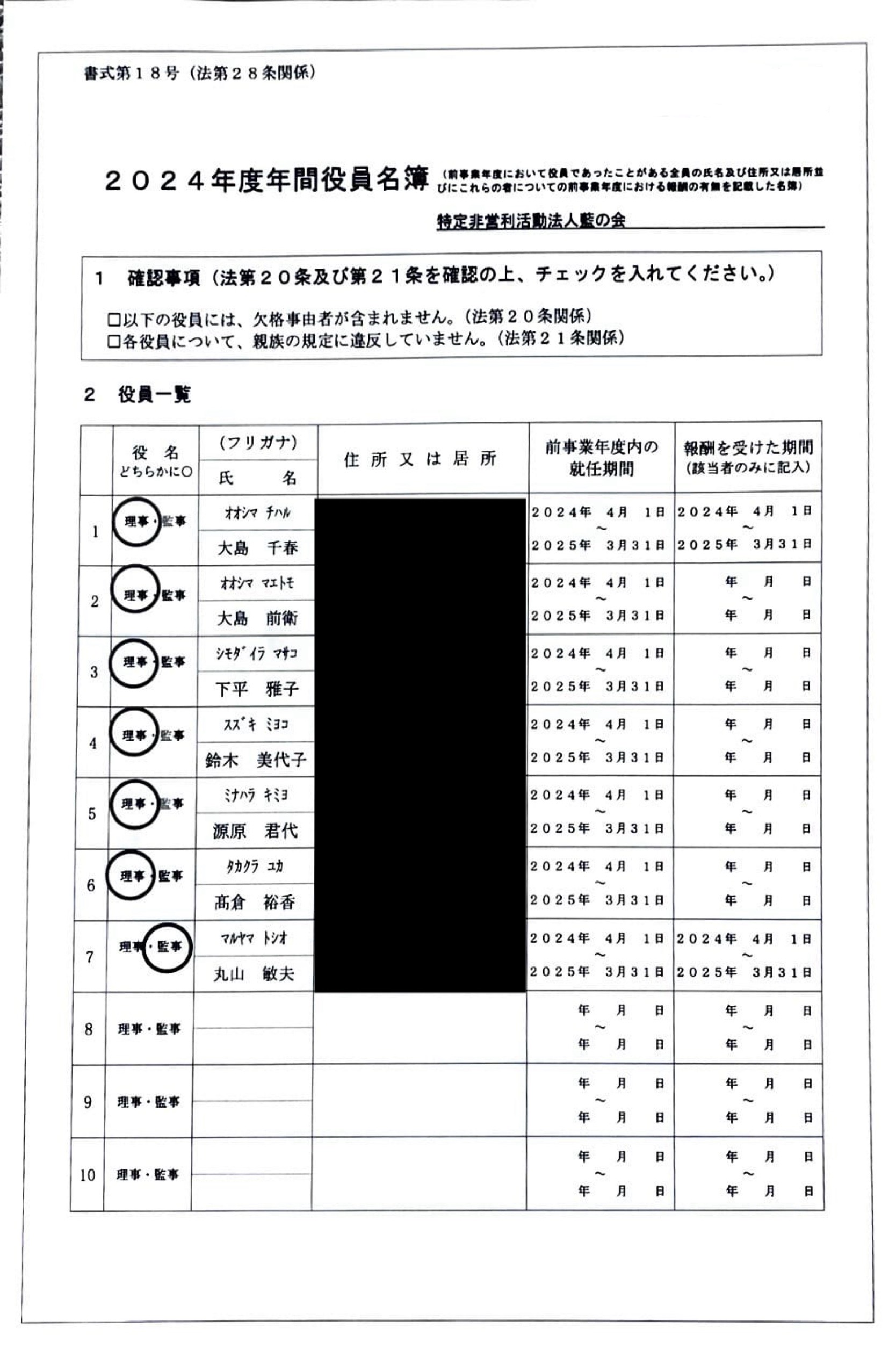 | 法人名 | 特定非営利活動法人 藍の会 |